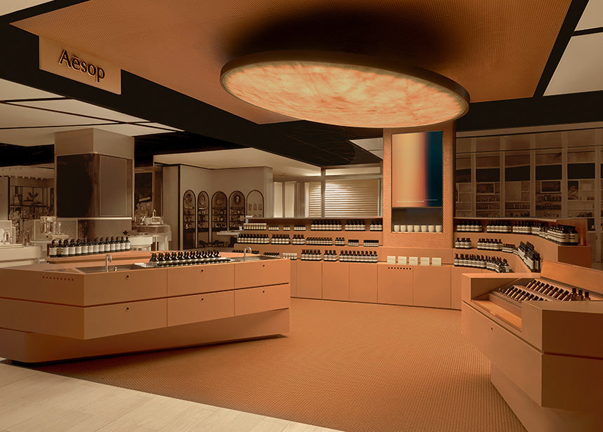 Designed by the brand’s in-house architects, Aesop’s space within the Central World retail centre, Bangkok, is a meditation on shade—on how light can be shielded, diverted, filtered. The store is conceived as a dappled courtyard, where adjustable partitions mediate one’s experience and act as a buffer between Aesop’s aromatic sanctuary and the bustling mall.